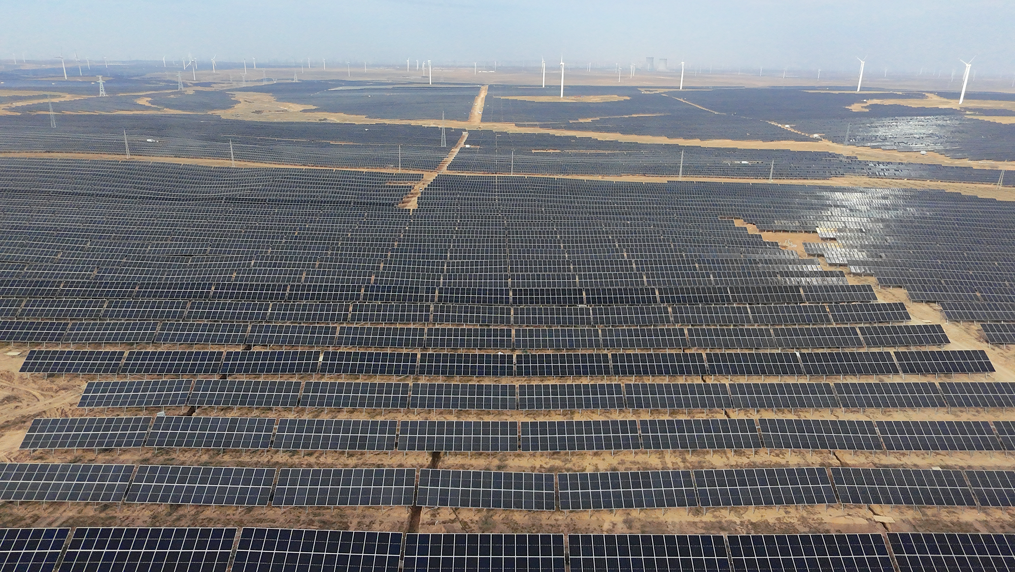 近日,中國電建參建的國內單體最大采煤沉陷區光伏項目寧夏靈武400萬千瓦采煤沉陷區新能源基地建成投運,將為我國西北能源基地資源優勢高效轉化、經濟社會高質量發展提供強勁動力。 寧夏靈武400萬千瓦采煤沉陷區新能源基地是我國第二批“沙戈荒”大型風電光伏基地的重要組成部分,占地約12萬畝,年均外送清潔電能超70億千瓦時。中國電建所屬山東電建三公司、湖北工程公司、西北院、貴陽院、上海電建公司、山東電建公司、電建核電公司等單位參與建設。 此次寧夏靈武400萬千瓦采煤沉陷區新能源基地建成投運,標志著占地面積18萬畝、總裝機600萬千瓦的寧夏采煤沉陷區項目全面建成。寧夏采煤沉陷區項目由寧東200萬千瓦采煤沉陷區復合光伏基地和寧夏靈武400萬千瓦采煤沉陷區復合光伏基地組成,總占地面積約相當于16000個足球場,配套建設6座330千伏升壓站和200公里送出線路。 項目每年將通過寧夏—浙江±800千伏靈紹特高壓直流輸電通道實現約108億度的清潔電能“西電東送”,助力國家優化能源配置和構建穩定的清潔能源供應體系,同時結合光伏治沙降低風速與蒸發量,實現沙化土地修復。 項目全部建成投運后,每年可滿足720萬個家庭一年用電需要,可節約標準煤約324萬噸,經濟社會效益、節能環保效益顯著,為助力我國實現“雙碳”目標,推進黃河流域生態保護和高質量發展作出重要貢獻。 |