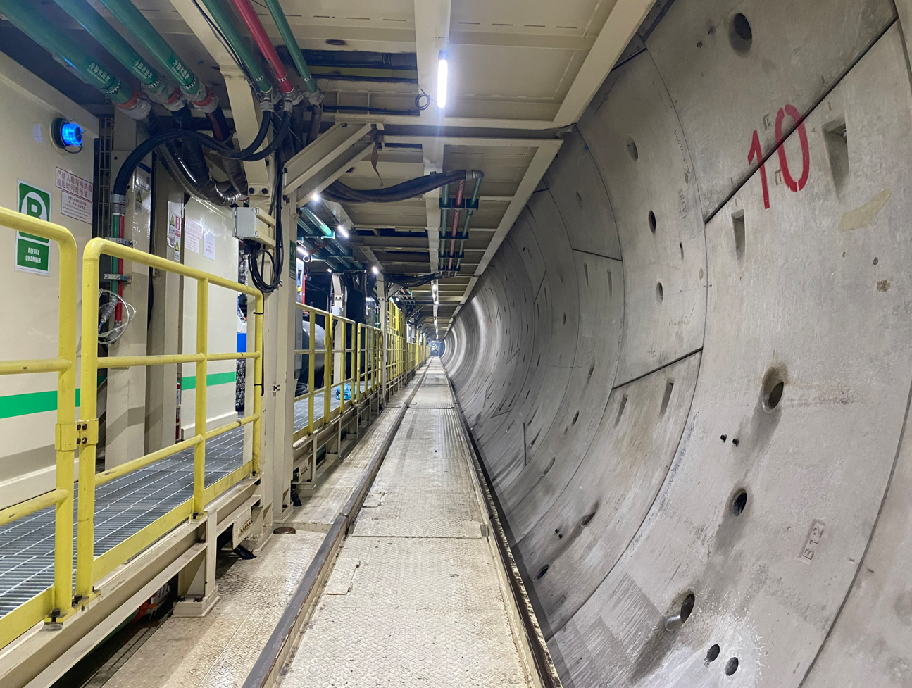 過程中,項目把精細化管控貫穿管片拼裝全流程,從管片進場驗收、精準定位到拼裝成型,螺栓二次復緊等關鍵工序均實行毫米級精度把控,結合智能化人機交互系統與高精度激光導向系統雙重校準,有效杜絕管片錯臺、間隙超標等問題,真正實現“無錯臺、無破損、無滲漏”的質量目標,為隧道結構長期安全提供堅實保障。
