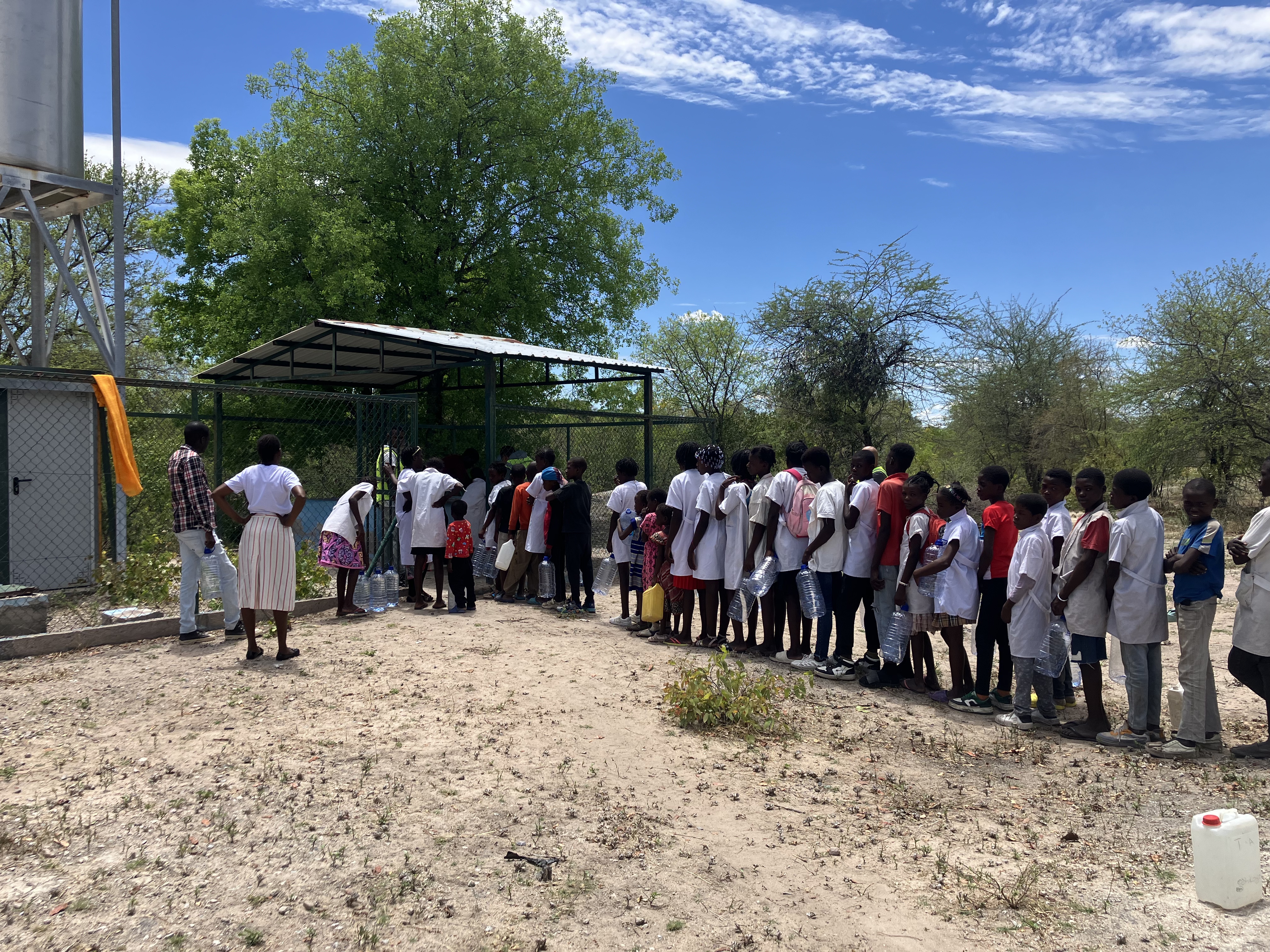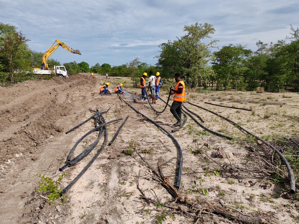 在安哥拉庫(kù)內(nèi)內(nèi)省翁吉瓦市這片干涸的土地上,一條七公里長(zhǎng)的輸水支線宛如銀色紐帶,從翁吉瓦-安漢加主管道蜿蜒而出,直抵奧蒙格特小學(xué)。當(dāng)清澈的自來(lái)水噴涌而出,300余名師生和周邊村民的歡呼聲,在非洲大陸熾熱的陽(yáng)光下久久回蕩。這不僅僅是一條輸水管道,更是庫(kù)內(nèi)內(nèi)抗旱聯(lián)營(yíng)項(xiàng)目踐行“一帶一路”倡議、架起中非民心相通的“幸福橋”,是一份跨越山海的溫暖約定。 初心:解黃土深處的缺水之困 庫(kù)內(nèi)內(nèi)省常年干旱,水資源短缺是困擾當(dāng)?shù)孛裆暮诵碾y題。2025年初,項(xiàng)目團(tuán)隊(duì)在調(diào)研生產(chǎn)營(yíng)地和拌合站供水建設(shè)時(shí),意外發(fā)現(xiàn)了奧蒙格特小學(xué)的困境:這所輻射周邊五公里的學(xué)校,僅有一座廢棄水塔,既無(wú)市政管網(wǎng)接入,更無(wú)穩(wěn)定水源。 “孩子們每天要頭頂水桶,步行五公里去大馬路邊的積水坑取水。沉重的水桶壓得他們本就瘦小的身軀難以挺直。渴極了,他們便大口喝著渾濁不堪、滿是泥沙的積水。”回憶起初次走訪的場(chǎng)景,項(xiàng)目人員的聲音仍透著心疼。附近村民的生活同樣艱難,積水坑的水需兼顧飲用、做飯、洗衣和灌溉,因飲用不潔水而致病的情況屢見(jiàn)不鮮。這一幕幕,深深刺痛了每一位項(xiàng)目成員的心。 “抗旱工程的初心就是惠民,絕不能看著孩子們受苦。”項(xiàng)目黨支部書(shū)記、項(xiàng)目經(jīng)理史霜撫摸著一個(gè)孩子曬得發(fā)燙的臉頰,望著桶中渾濁的水,眼眶瞬間紅了,“再難也要讓孩子們喝上干凈水!我們要把自來(lái)水接到學(xué)校來(lái)!”在場(chǎng)職工齊聲響應(yīng):“干!” 這一決定,不僅是中國(guó)電建“責(zé)任、創(chuàng)新、誠(chéng)信、共贏”核心價(jià)值觀的生動(dòng)落地,更完美契合了“一帶一路”建設(shè)中“小而美”民生項(xiàng)目暖民心、惠民生的初衷。 攻堅(jiān):二十天打通“生命水道” 雨季將至,早一天通水,師生們就能早一天擺脫取水之苦。項(xiàng)目團(tuán)隊(duì)立下“二十天完成通水”的軍令狀,一場(chǎng)與時(shí)間賽跑、與自然較勁的攻堅(jiān)戰(zhàn),在干涸的黃土地上正式打響。 施工條件之艱苦遠(yuǎn)超想象。一月的庫(kù)內(nèi)內(nèi)酷熱難耐,最高氣溫常突破38℃,紫外線指數(shù)高達(dá)11-14。部分鋪設(shè)路線大型機(jī)械無(wú)法進(jìn)入,項(xiàng)目團(tuán)隊(duì)只能在原始森林中徒步作業(yè),所有管材工具全靠人工搬運(yùn)。 “每人每天背著2升的大水壺,水都得省著喝。實(shí)在渴得不行,只能喝管道里又燙又澀的水。”項(xiàng)目人員回憶道。盡管大家普遍出現(xiàn)中暑癥狀,每天需服用藿香正氣等藥物,但早出晚歸、堅(jiān)守一線仍是常態(tài)。 面對(duì)RTK儀器測(cè)量出的波浪形高差地形,即生產(chǎn)營(yíng)地地勢(shì)高于來(lái)水方向,水流貫通面臨巨大挑戰(zhàn)。項(xiàng)目團(tuán)隊(duì)反復(fù)推敲、科學(xué)研判,最終確立“分段開(kāi)挖、探點(diǎn)測(cè)試”的施工方案,從起點(diǎn)和終點(diǎn)雙向推進(jìn),逐段開(kāi)挖溝槽、更換損毀管道,確保每一段都暢通無(wú)阻。 中安員工并肩作戰(zhàn)的身影,成為黃土地上最動(dòng)人的風(fēng)景。中方技術(shù)人員負(fù)責(zé)測(cè)量校準(zhǔn)、方案優(yōu)化及指揮調(diào)度;安方員工憑借對(duì)地形的熟悉,主動(dòng)帶路搬運(yùn);附近村民也自發(fā)加入,老人揮鋤挖掘,孩童幫忙撿拾碎石。不同語(yǔ)言的人們,懷著對(duì)清水的共同期盼,默契配合。 歷經(jīng)20天連續(xù)奮戰(zhàn),總長(zhǎng)七公里的輸水支線終于順利貫通! 通水:清水潤(rùn)澤幸福美好生活 “água muito boa, obrigado SINOHYDRO!”(水太好了,謝謝中國(guó)水電!)通水當(dāng)日,學(xué)校老師緊握著項(xiàng)目職工的手,反復(fù)念叨著這句話。當(dāng)水管被舉至兩米高仍能?chē)姵鰪?qiáng)勁水流時(shí),電建員工、安方員工、學(xué)校師生及附近村民歡呼雀躍。扎著小辮的女孩踮腳接水,水珠濺在臉上,她笑著用手背一抹;男孩們掬水互潑,清脆的笑聲蓋過(guò)了風(fēng)聲;大人們手持盆桶,臉上洋溢著久違而踏實(shí)的笑容。 通水后的奧蒙格特小學(xué)煥然一新。“以前每天要花兩小時(shí)取水,現(xiàn)在課間就能接到清水,孩子們有了更多時(shí)間讀書(shū)、畫(huà)畫(huà)、做游戲。”學(xué)校負(fù)責(zé)人指著操場(chǎng)邊的空地展望道,“有了穩(wěn)定水源,我們計(jì)劃開(kāi)辟一片菜園,讓師生們吃上新鮮蔬菜!” 周邊村民的生活也發(fā)生了質(zhì)的飛躍。往返十公里挑水的艱辛已成為歷史,干凈的自來(lái)水不僅保障了日常飲用,更解決了灌溉難題。不少村民的莊稼喜獲豐收,家庭溫飽得以改善。“以前總擔(dān)心喝水生病,現(xiàn)在打開(kāi)水龍頭就有干凈水,這是中國(guó)朋友們帶來(lái)的福氣。”一位年長(zhǎng)的村民感慨道。 這份民生善舉贏得了當(dāng)?shù)卣母叨日J(rèn)可。寬哈馬市市政管理局專程發(fā)來(lái)感謝信,盛贊項(xiàng)目“為社區(qū)作出了重要社會(huì)貢獻(xiàn),緩解了長(zhǎng)期存在的嚴(yán)重缺水問(wèn)題”。而這只是庫(kù)內(nèi)內(nèi)抗旱聯(lián)營(yíng)項(xiàng)目踐行社會(huì)責(zé)任的一個