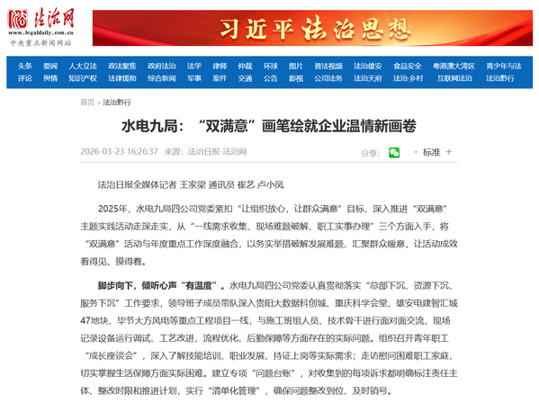 《法治日報》水電九局:“雙滿意”畫筆繪就企業溫情新畫卷